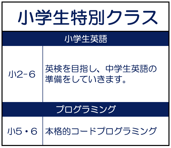 英数を基本に国理社にも対応。受験には特別授業が目白押し。